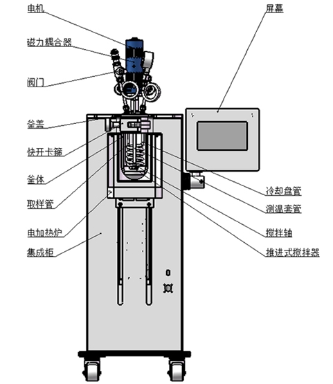 產(chǎn)品功能和特點:升降型式,機電一體化設計、結構緊湊;框架支撐結構,配腳輪方便移動;主體可快開設計,開閉釜操作方便、快捷;升降輔助機構方便操作,手動/電動可選;高扭矩磁力傳動,配優(yōu)選電機,提升運行穩(wěn)定性;攪拌支持定制槳葉類型,適配多樣化攪拌需求;加熱爐傳熱快,均熱效果好,效率可調(diào);真彩色觸控屏,模塊化顯示,控制界面操作簡潔;支持遠程控制,具備RS485通訊口,配上位機軟件;可顯示工作時間/溫度/轉速/壓力,PID自整定控溫精準;具備安全連鎖功能,超溫超壓報警;具備數(shù)據(jù)采集,記錄以及報表導出功能;支持選配加料、計量、取樣、冷凝等擴展功能。